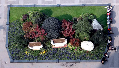 据李寿仁介绍,保留下来的大树主要有两种处理手法:像天竺桂、黄葛树等几十年的老树,在周围搭建木质平台,既可以保护大树,又可供游人休息;一些香樟、桂花、银杏等,则用森林绿整石围边,搭配草皮、三色堇、球类、日本红枫等植物,采用花境的布置手法,建成一个个面积大小不一的花坛,营造出四时风光各不同的江南园林意境。而平滑、细腻的森林绿整石,既是景观的一部分,又是漂亮的坐凳,兼顾了景观与实用的功能。