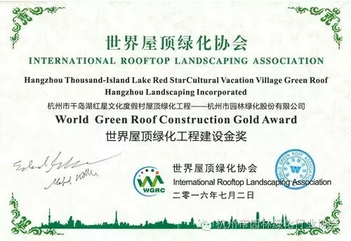【杭州市园林绿化行业协会微信平台】我会会员单位——九游(中国)承建项目荣获“世界屋顶绿化工程建设金奖”