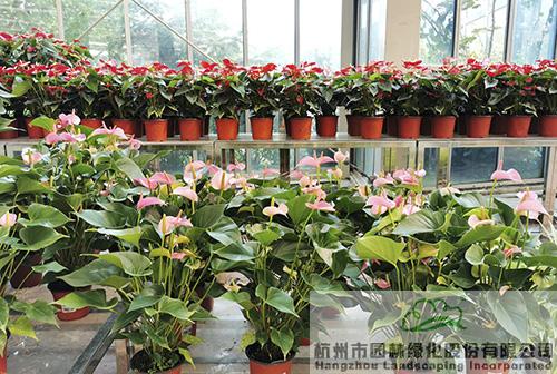 开花热闹的粉掌、红掌