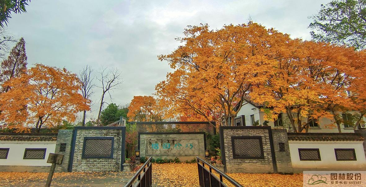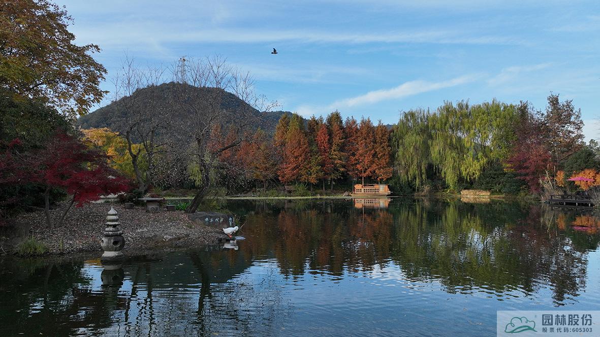 金黄的无患子、绚丽的红枫、黄红变换的枫香构成了画境园初冬缤纷世界的三部曲。半岛的乌桕、池塘对岸的水杉水松池杉混交林,则如跳动的音符,共同谱写着初冬的乐章。